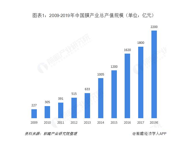 同時,膜產業總產值(膜產品、膜組件、膜輔助設備及相關項目總產值)大幅增長,從2009年的227億元增長到2017年的1800億元。2019年,膜產業總產值預計達到2200億元。